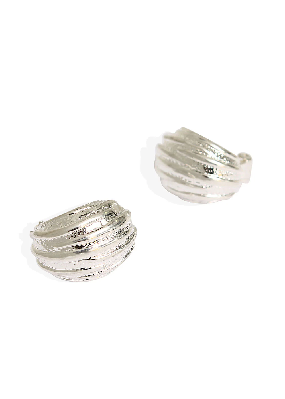Our Athena Earrings feature an organic textured design, creating a unique and elegant look. They are lightweight and durable with the demi hoop shape and clip-on style offering a comfortable and secure fit for all-day wear. Elevate any outfit with these statement earrings.Â