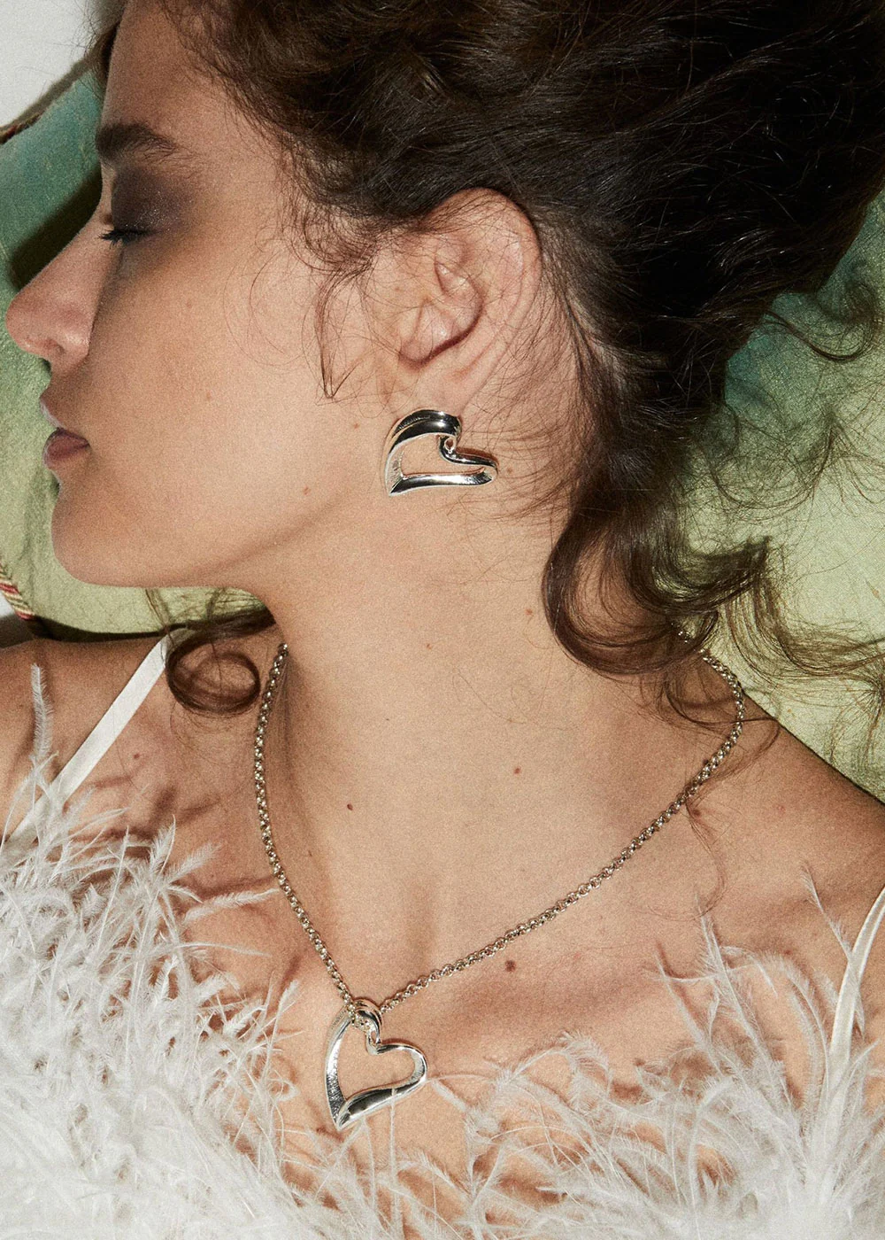 Our stunning Silver plated open heart Evangeline necklace are the perfect everyday piece with the irregular design pendant with textured edges strung onto our silver plated rolo chain. Perfectly paired with our Evangeline earrings.Â