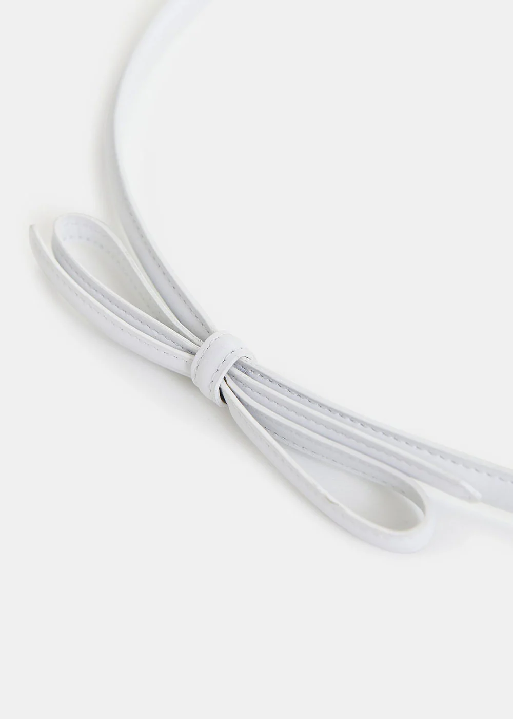 Crafted from leather fabric, this 12 mm width belt is sure to add a touch of glamour to your outfit. The design features a bow detail, tonal stitching, and a practical buckle fastening for an elegant finish.