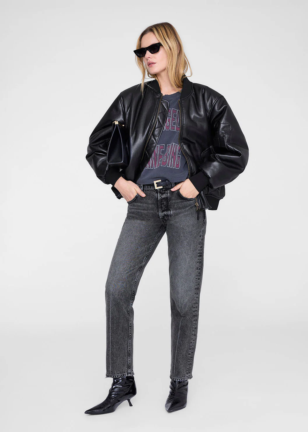 - Faded red 'LOS ANGELES ANINE BING' screen print graphic with white outline at front