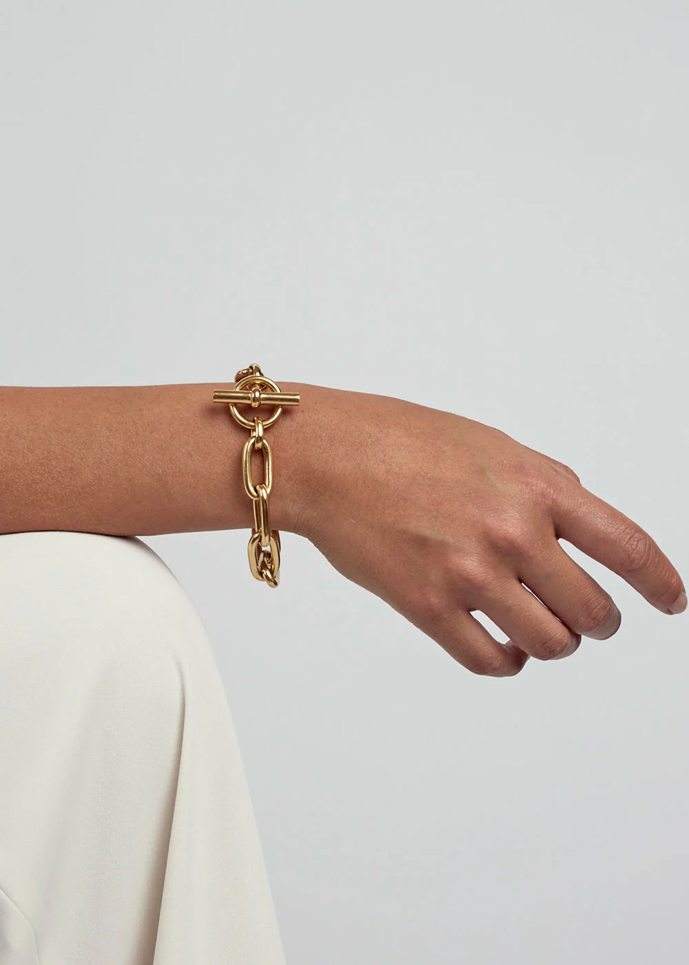 The size down from one of our best sellers, this gold plated oval linked bracelet is an absolute wardrobe staple if you’re not wanting to go for maximum chunk! The elongated links make it an elegant addition to any bracelet stack.
