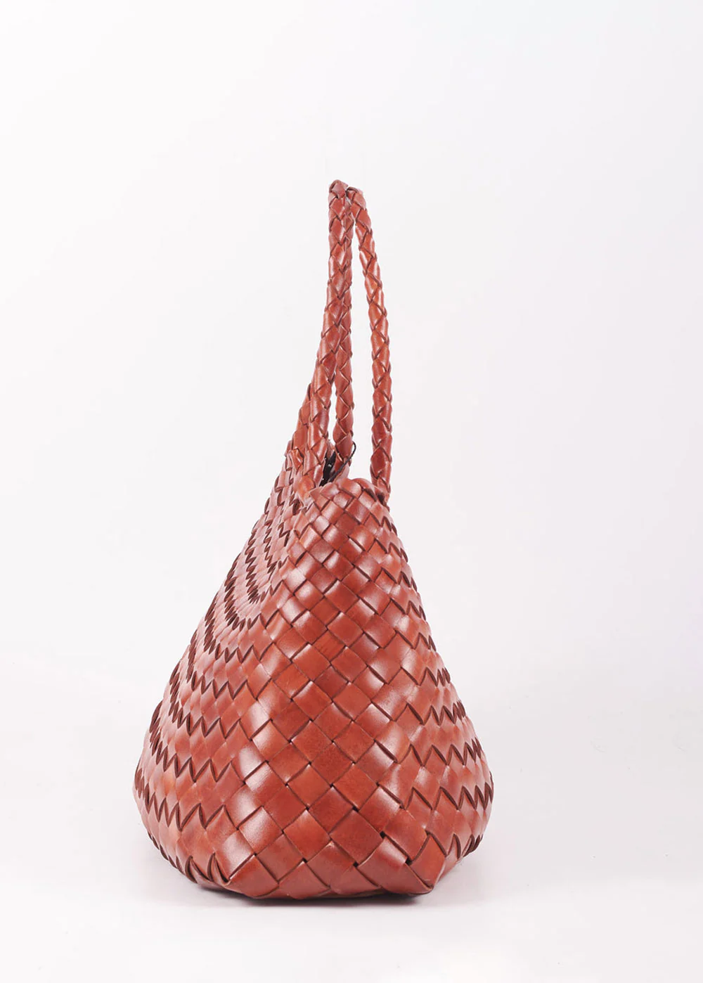 Discover the elegance of the Selina Woven Leather Handbag, featuring a roomy base and sophisticated pyramid shape. Crafted from premium woven leather, it’s as durable as it is stylish.
